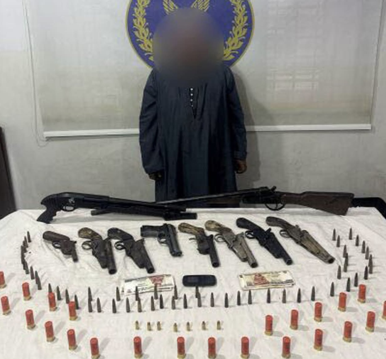 أكدت معلومات وتحريات قطاع الأمن العام بمشاركة مديرية أمن البحيرة قيام (عنصر إجرامي”له معلومات جنائية”– مقيم بدائرة مركز شرطة كوم حمادة) بمزاولة نشاطاً إجرامياً تخصص فى الإتجار بالأسلحة النارية والذخائر غير المرخصة متخذاً من دائرة المركز مسرحاً لمزاولة نشاطه الإجرامى.