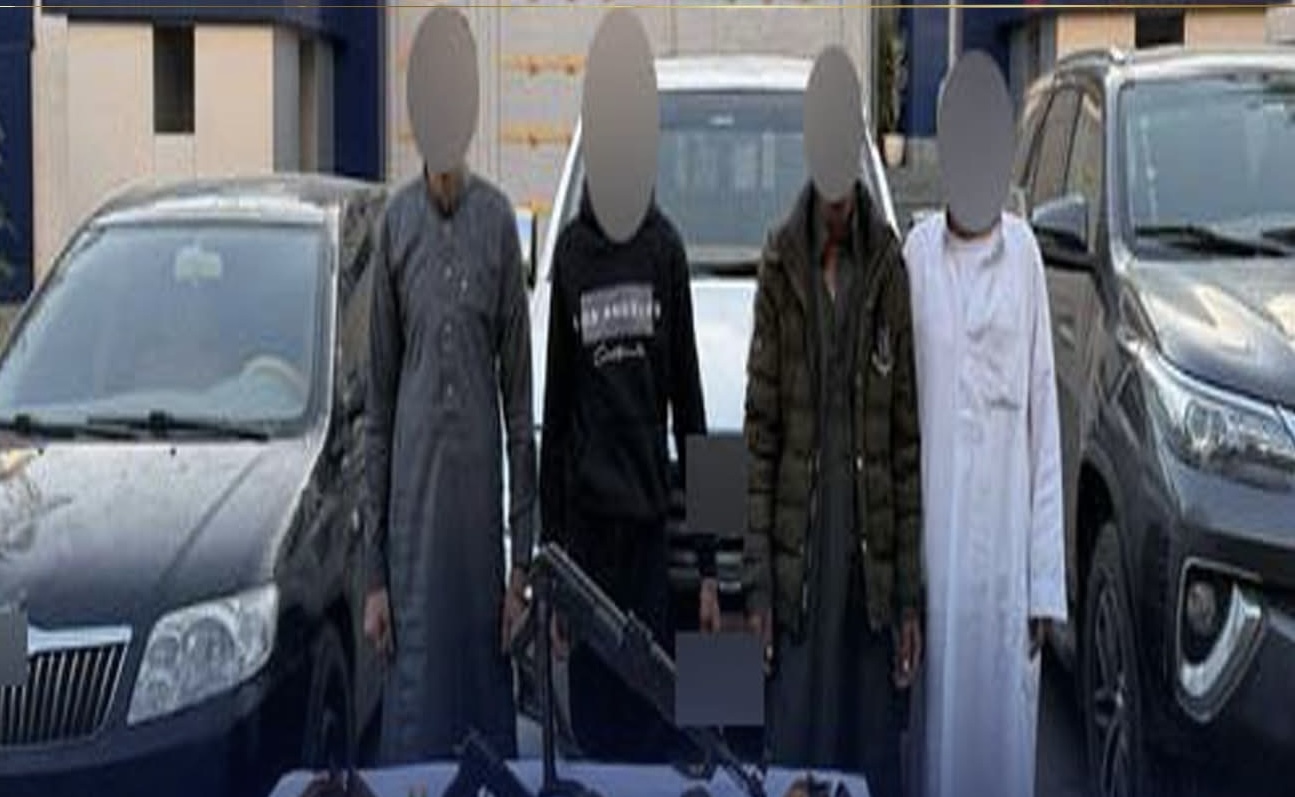 عقب تقنين الإجراءات تم ضبطهم وبحوزتهم (بندقية آلية – 2 فرد خرطوش – طبنجة – عدد من الطلقات مختلفة الأعيرة 3 سيارات) .