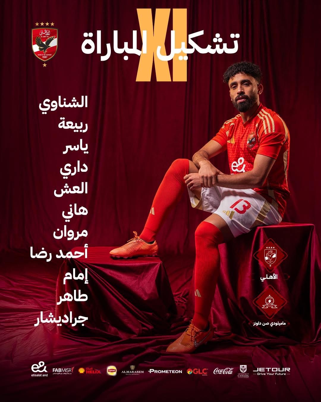 خط الوسط: مروان عطية وإمام عاشور وأحمد رضا وطاهر محمد.