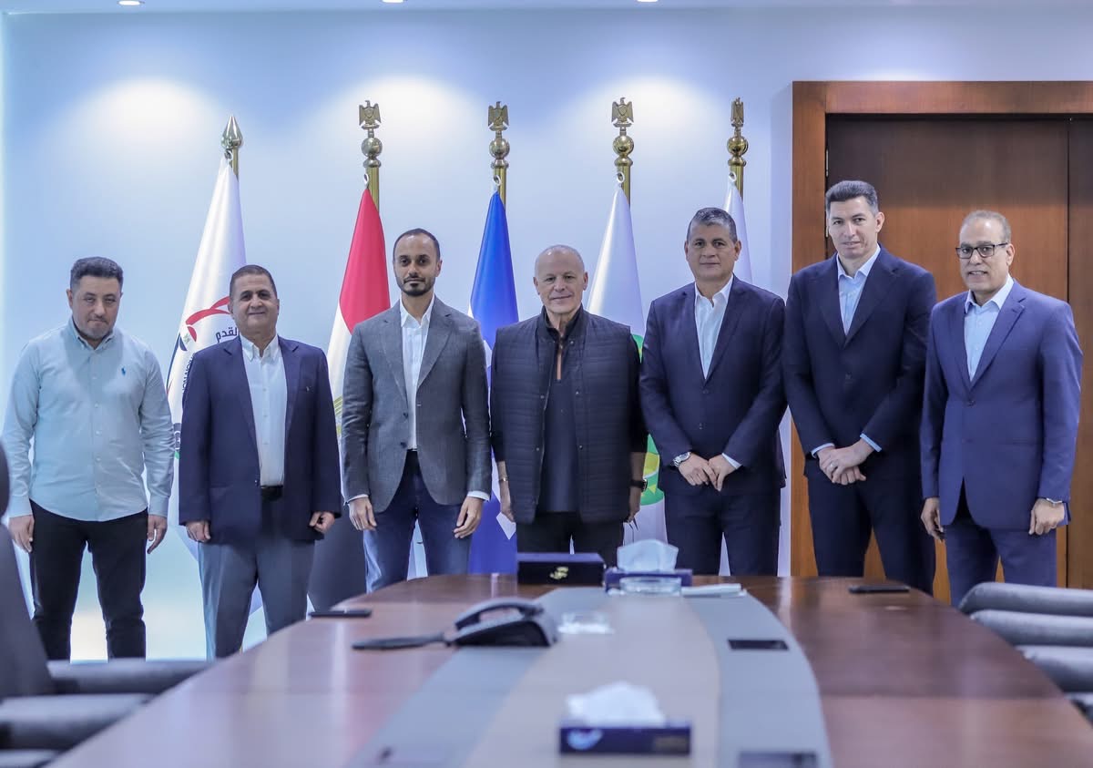 رحب المهندس هاني أبو ريدة رئيس الاتحاد المصري لكرة القدم بوفد لجنة الحكام الإماراتية برئاسة سالم علي الشامسي رئيس اللجنة خلال زيارتهم اليوم لمقر الاتحاد المصري بالسادس من أكتوبر.