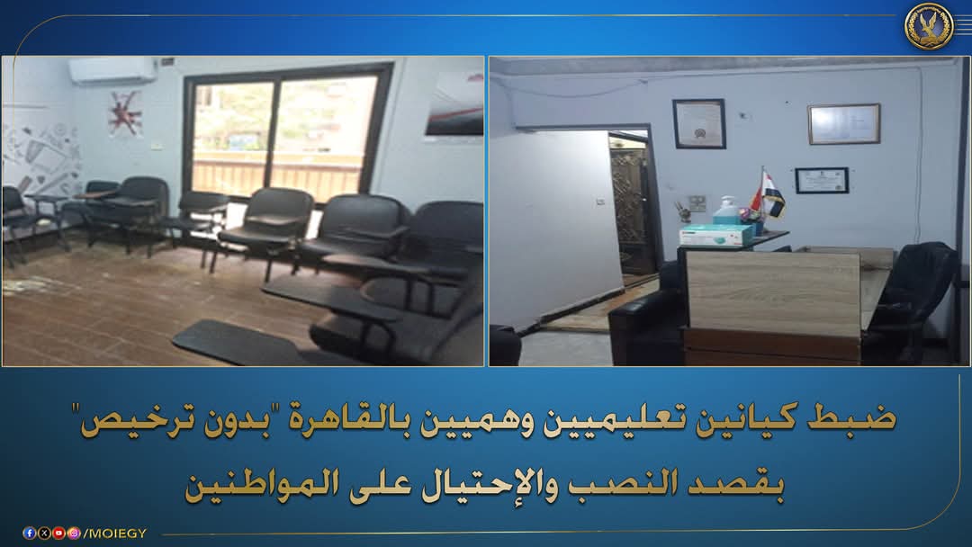 أكدت معلومات وتحريات الإدارة العامة لمباحث المصنفات وحماية حقوق الملكية الفكرية بقطاع الشرطة المتخصصة قيام (شخصين) بإنشاء وإدارة كيانين تعليميين وهميين “بدون ترخيص” – كائنان بدائرة قسم شرطة الساحل بالقاهرة