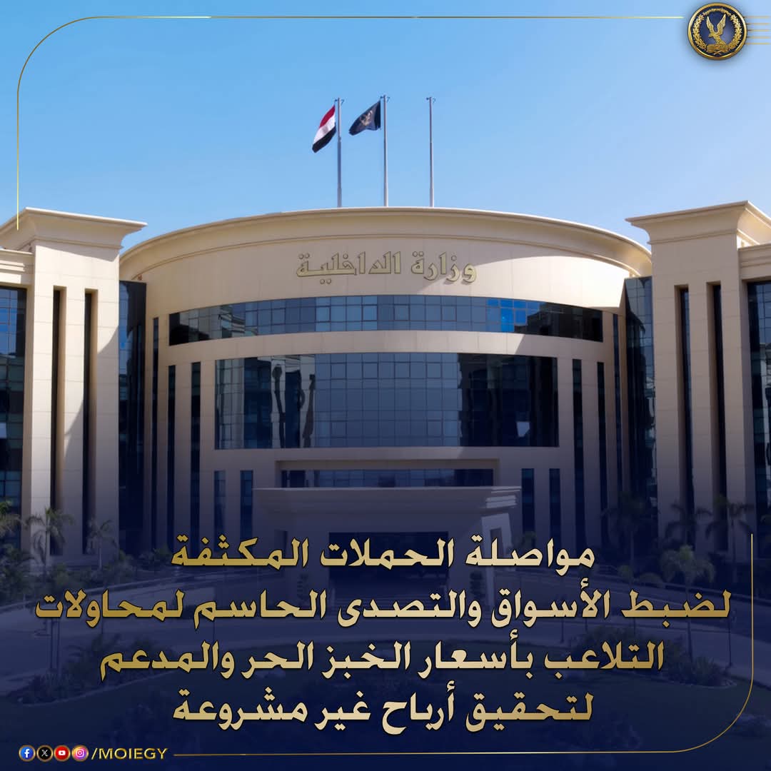 إستمراراً لجهود أجهزة وزارة الداخلية لحماية جمهور المستهلكين وإحكام الرقابة على الأسواق والتصدى لمحاولات التلاعب بأسعار الخبز والبيع بأزيد من السعر المقرر وعدم الإعلان عن الأسعار.