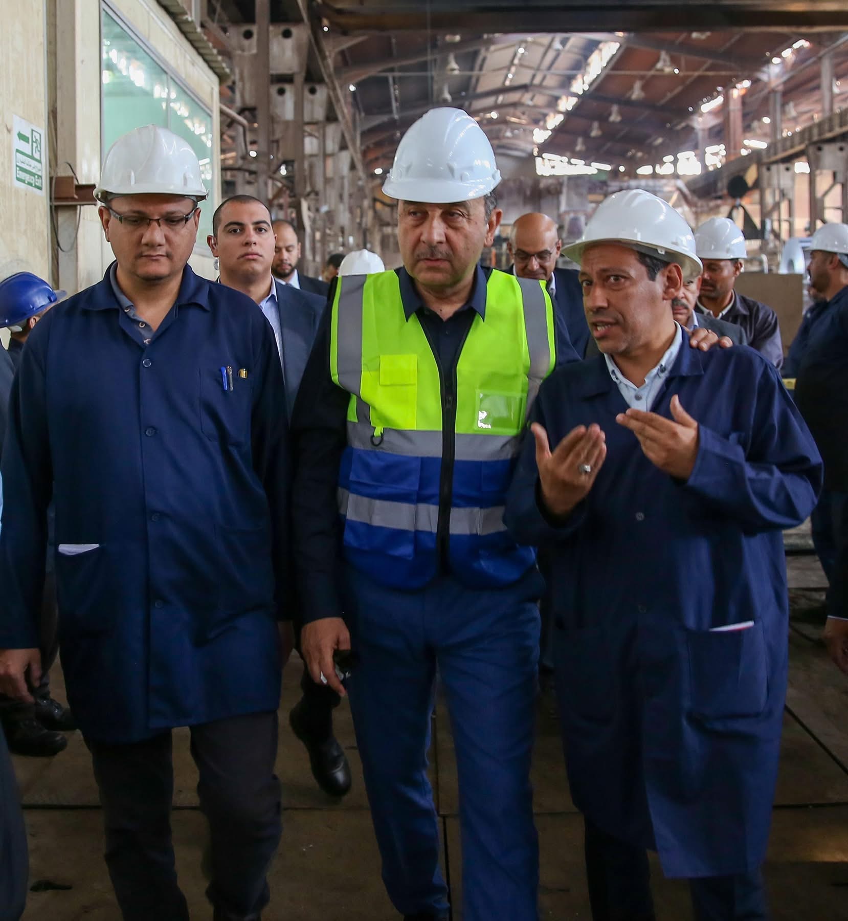 وحرص الوزير على لقاء عدد من العاملين بالمصانع، مشيدا بجهودهم وحثهم على بذل مزيد من العمل للارتقاء بأداء الشركة والمشاركة الفعالة في تنفيذ خطط التحديث، وذلك بحضور المهندس طارق الحديدي رئيس مجلس إدارة الشركة القابضة للصناعات المعدنية، والمهندس محمد السعداوي العضو المنتدب التنفيذي للشركة القابضة، والمهندس وائل شعبان العضو المنتدب التنفيذي لشركة النحاس المصرية.