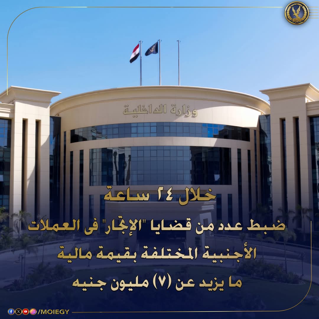إستمراراً للضربات الأمنية لجرائم الإتجار غير المشروع بالنقد الأجنبى والمضاربة بأسعار العملات عن طريق إخفائها عن التداول والإتجار بها خارج نطاق السوق المصرفى ، وما تؤدى إليه من تداعيات سلبية على الإقتصاد القومى للبلاد..فقد أسفرت جهود قطاع الأمن العام بالإشتراك مع الإدارة العامة لمكافحة جرائم الأموال العامة ومديريات الأمن خلال24 ساعة عن ضبط عدد من قضايا “الإتجار” فى العملات الأجنبية المختلفة بقيمة مالية ما يزيد عن (7 مليون جنيه).