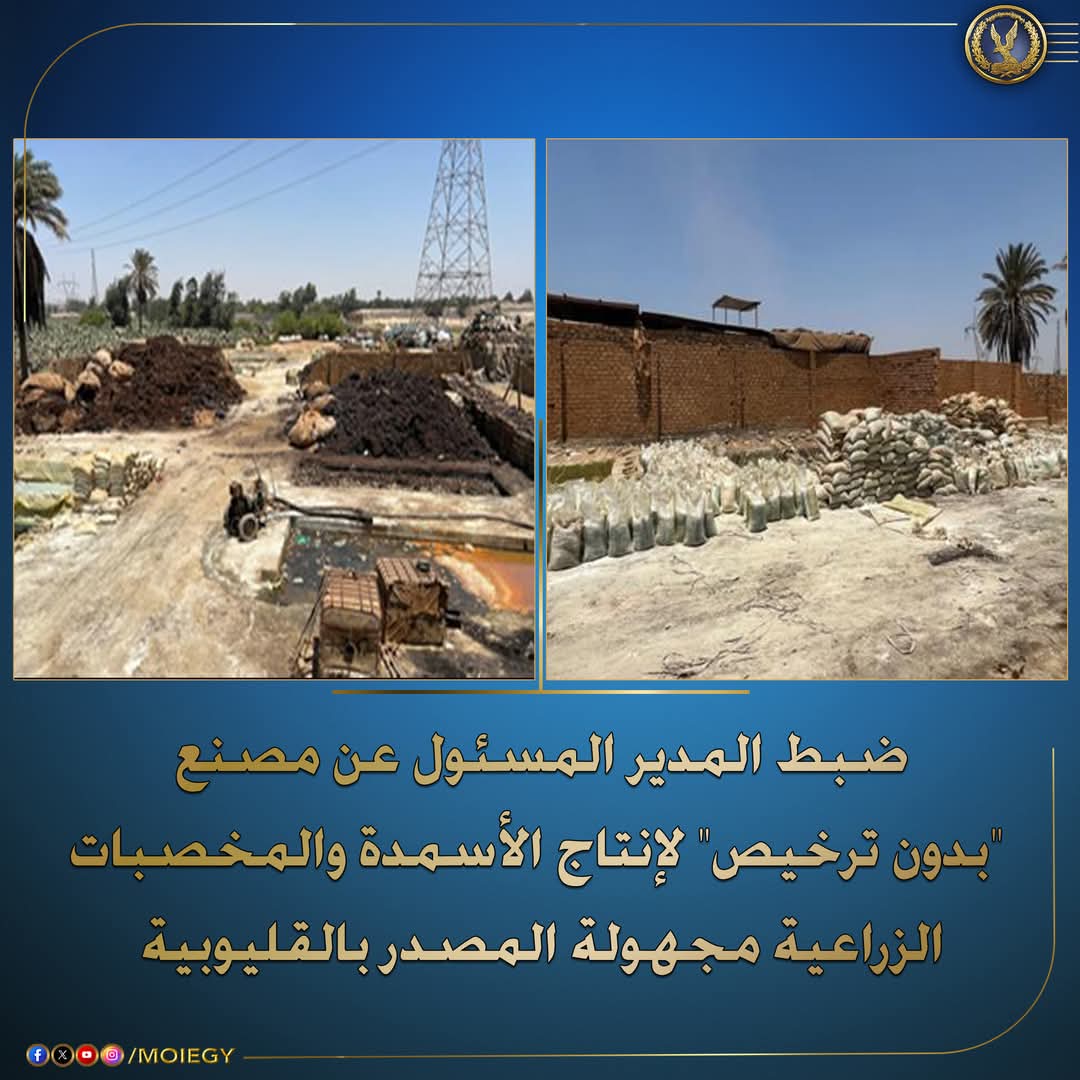 “كائنة بدائرة مركز شرطة #الخانكة بالقليوبية”، وإنشاء مصنع ” بدون ترخيص ” لإنتاج الأسمدة والمخصبات الزراعية مجهولة المصدر، وطرحها بالأسواق لتحقيق أرباح غير مشروعة .