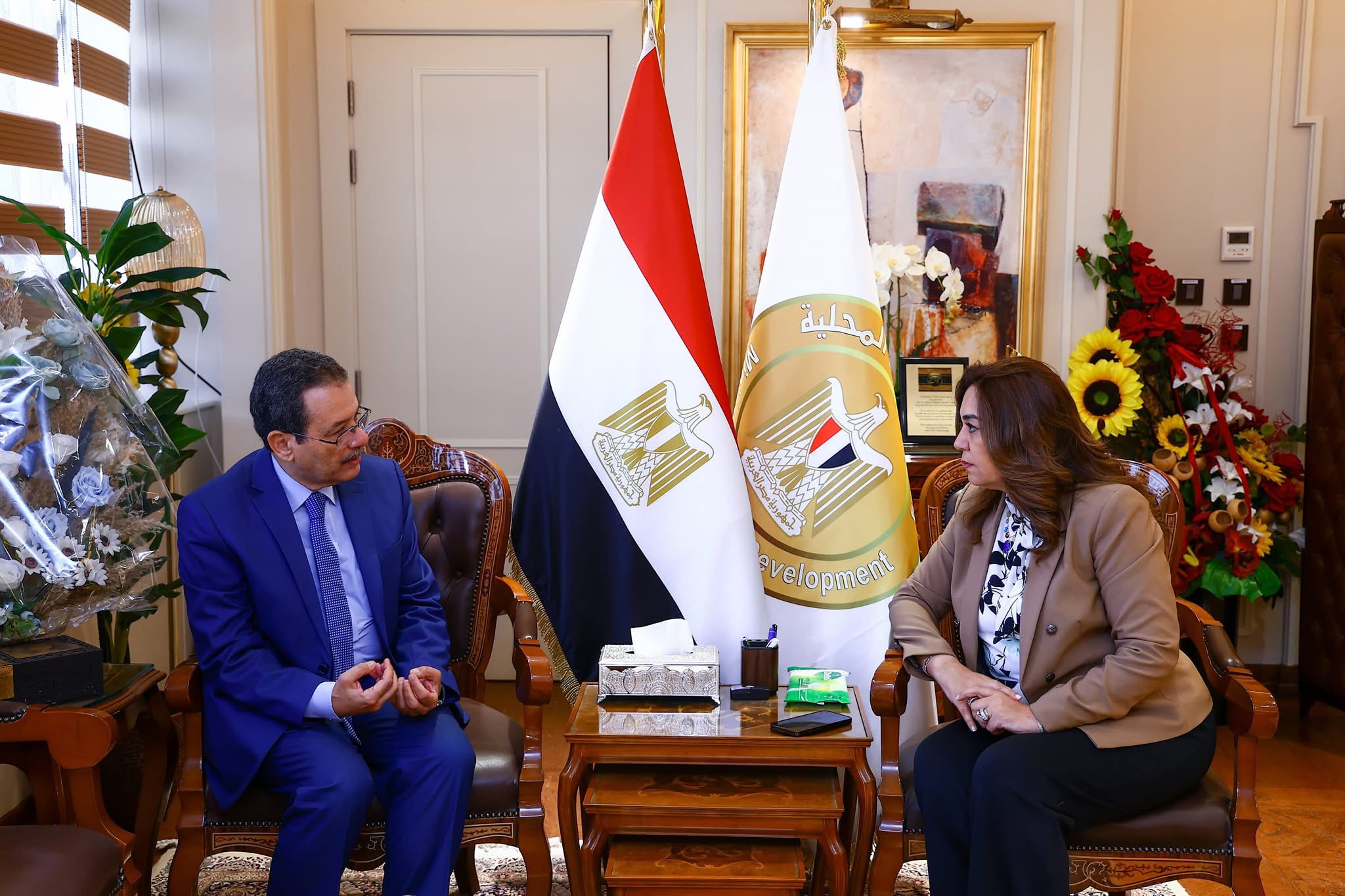 كما تطرق اللقاء إلى بحث عدد من مجالات عمل برنامج الدعم الفنى لوزارة التنمية المحلية المنفذ من خلال برنامج الأمم المتحدة الإنمائى لوضع عدد من الاستراتيجيات والتشريعات التى تساهم فى تسريع العمل فى ملفات الإدارة المحلية بما يحقق رؤية مصر 2030 وتوطين أهداف التنمية المستدامة .