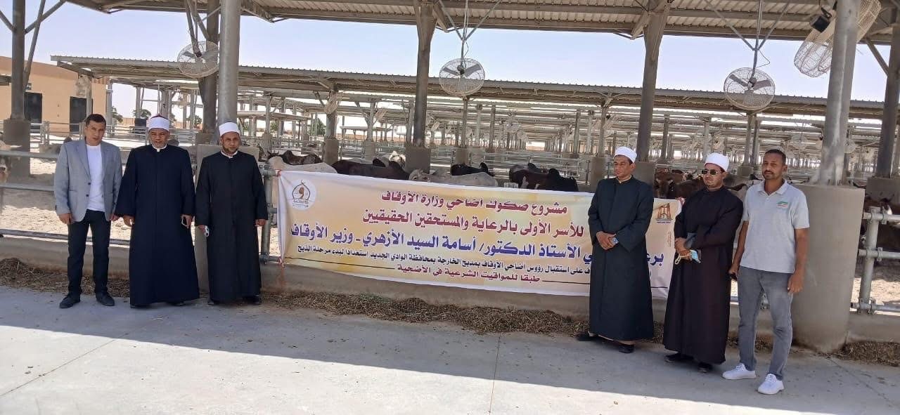 في إطار التجهيز لمشروع صكوك أضاحي وزارة الأوقاف للأسر الأولى بالرعاية والمستحقين الحقيقيين، أعلنت وزارة الأوقاف تواصل جهود تسلم رؤوس الأضاحي من الأبقار السودانية ونقلها إلى مذبح الخارجة بمحافظة الوادي الجديد، لتغيير المرعى في مصر، وتمهيدًا واستعدادًا لفحصها وتجهيزها لبدء مرحلة ذبح الأضاحي، وذلك عقب صلاة عيد الأضحى المبارك في الأوقات الشرعية للذبح.